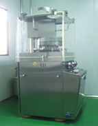 本機是一種雙壓式自動旋轉(zhuǎn),連續(xù)壓片的機器,將顆粒狀原料壓制成圓片、刻字和異形、雙色片劑。 機器的外圍部分采用全封閉形式。壓片的壓力是由液壓系統(tǒng)設(shè)定的,并附有壓力表顯示。液壓系列內(nèi)配有過載保護裝置,在壓力過載時能自動停機,避免機體的損壞 。